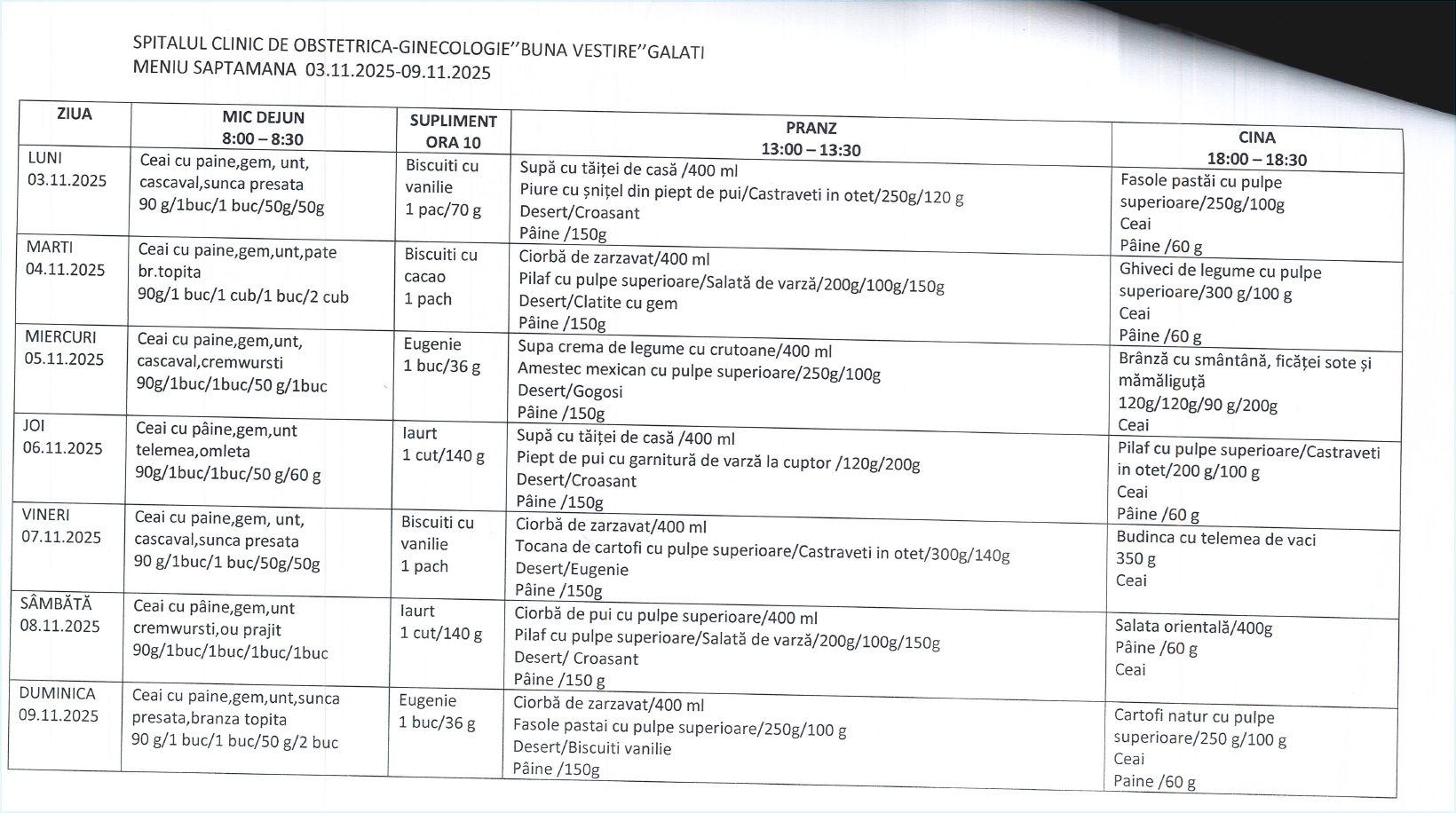 Meniu săptămânal 10.11.2025 - 16.11.2025