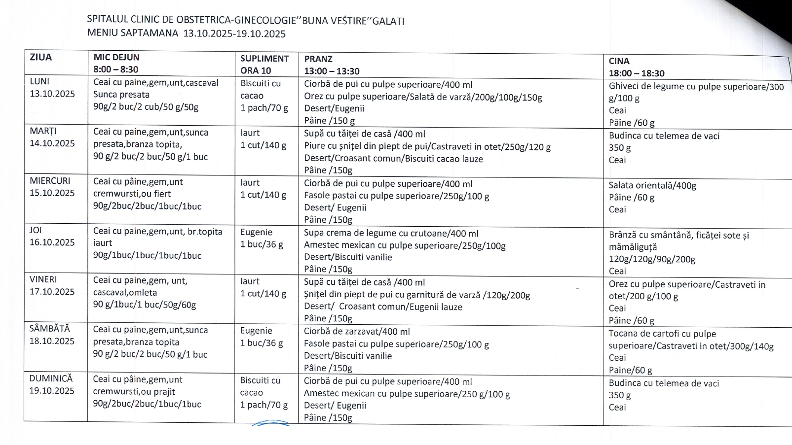 Meniu săptămânal 13.10.2025 - 19.10.2025